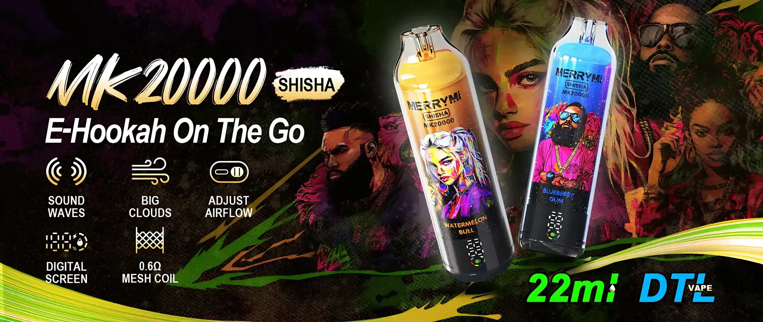 Brand:MERRYMIType:DisposablePuffs:20000Flavours:11Nicotine:5 %E-liquid:22 mL